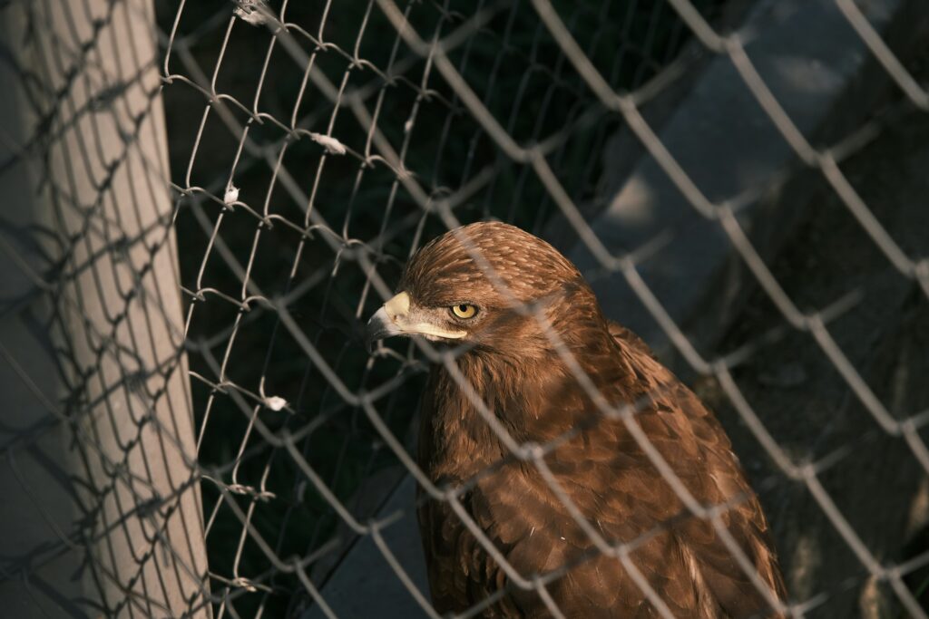 Rovfuglene er tilpasset et liv med fart over feltet, men i stedet må de henslæbe livet under kunstige forhold. Det er både trist og skammeligt!